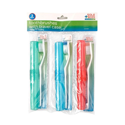 Toothbrush 3pk w Travel Case Asst Cols