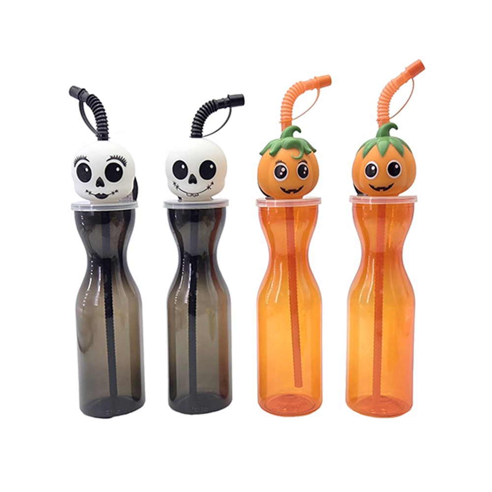 Boo Crew Novelty Bottle w Straw 4 Asst Ghost & Pumpkin