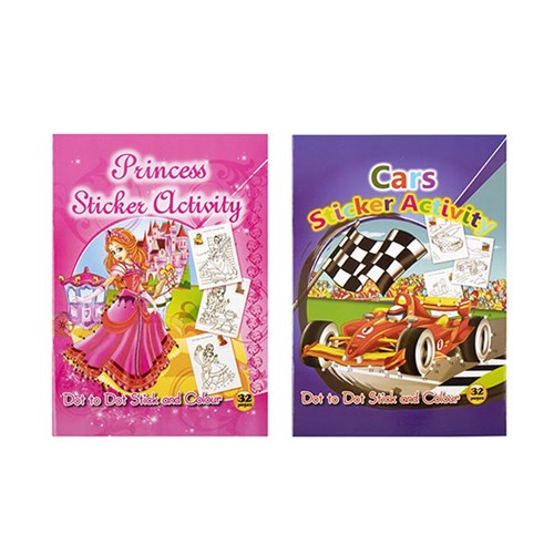 Book Kids Colouring Dot To Dot w Stickers A4 32pg 2 Asstd