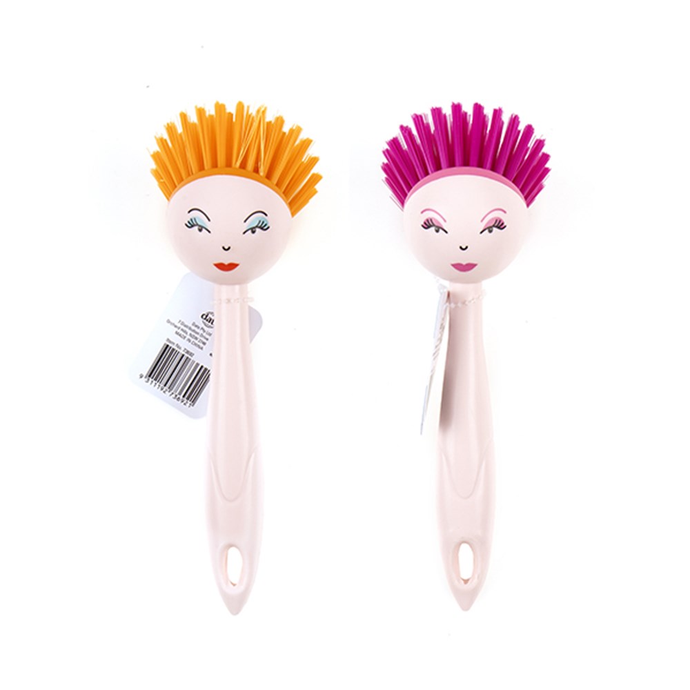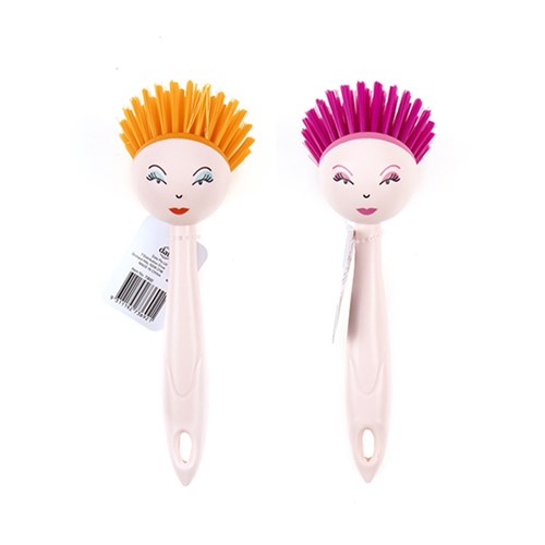 Brush Scrubber Dish w Doll Face Handle 22x5.5cm Asst Cols