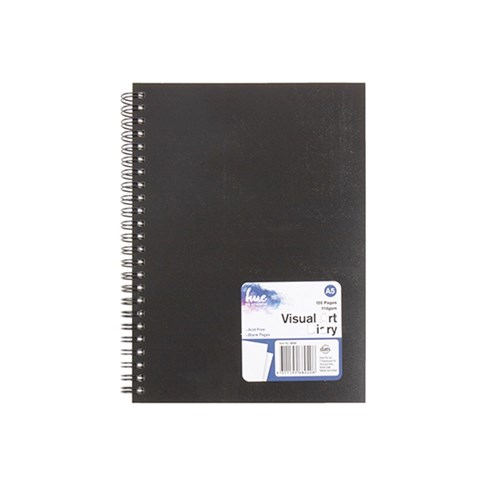 Diary Visual Art PP Black 110gsm A5 120pg Long Spiral