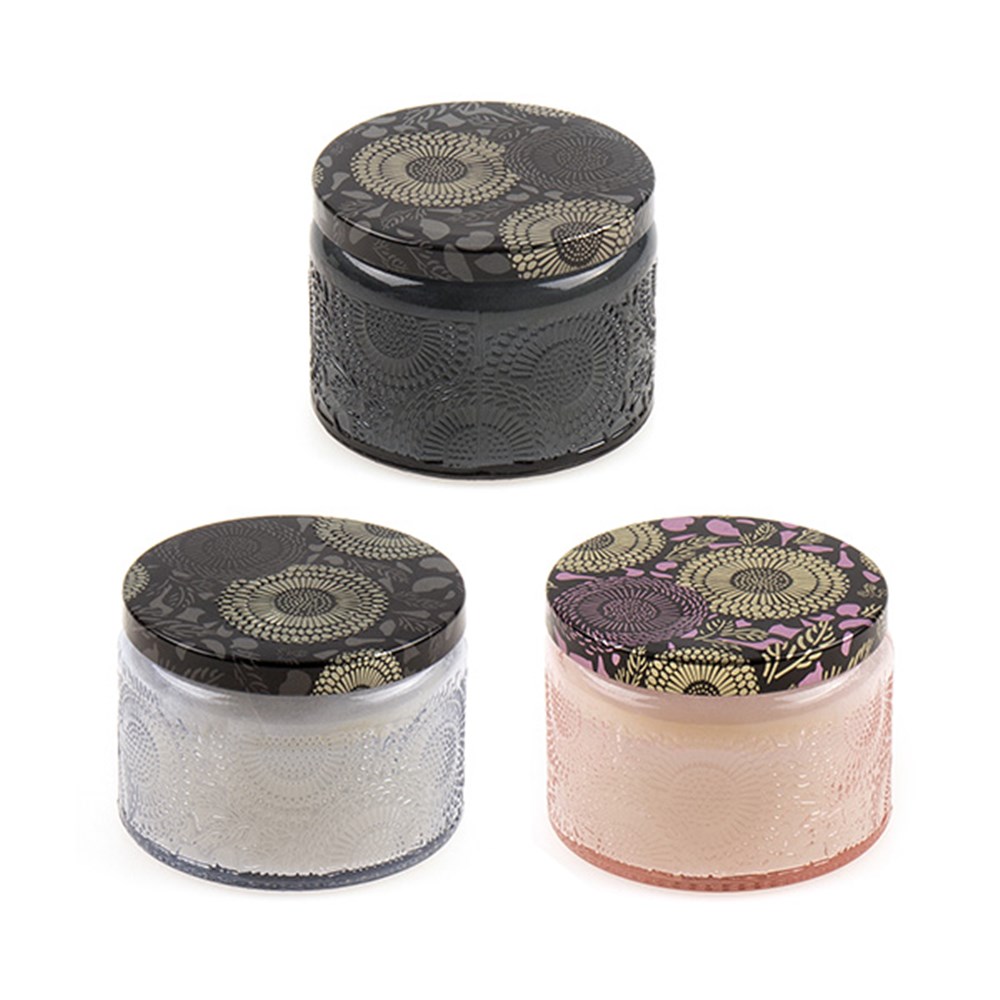Candle Citronella Glass Pot w Lid Asstd Cols 7x5cm 10hr