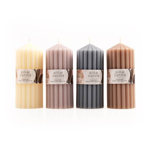 Candle Non Scented Pillar Ribbed 6.8x16cm Asst Cols