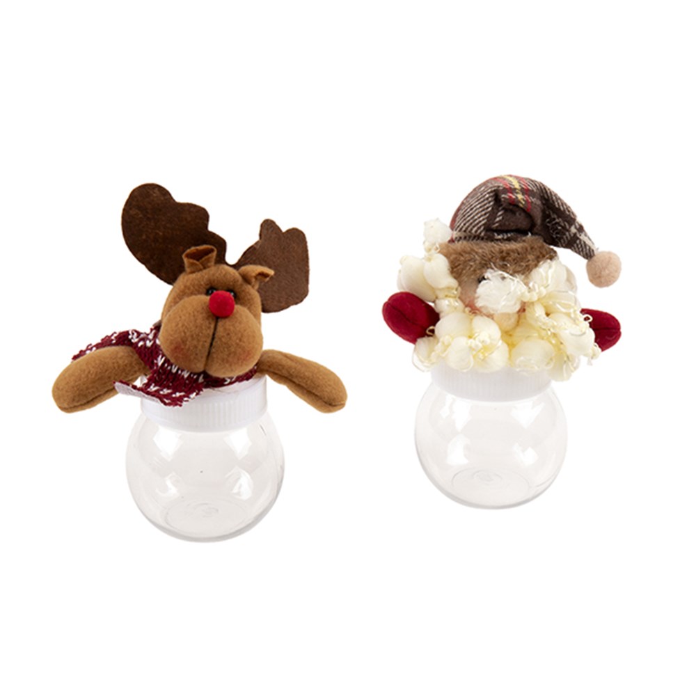 Candy Bag Jar Xmas w Plush Toy Lid 15x8cm 2 Asst