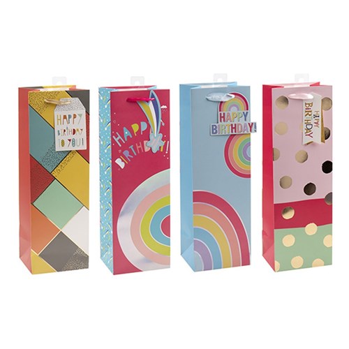 Gift Bag 210gsm Happy Birthday w J Hook Bottle 120x360x100mm