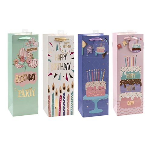 Gift Bag 210gsm Happy Birthday w J Hook Bottle 120x360x100mm