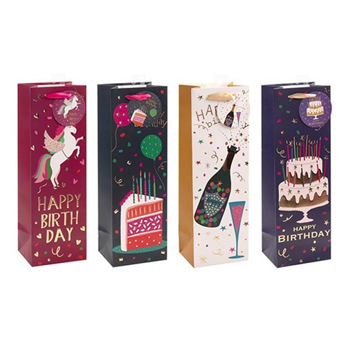 Gift Bag 210gsm Happy Birthday Embossed w J Hook Bottle