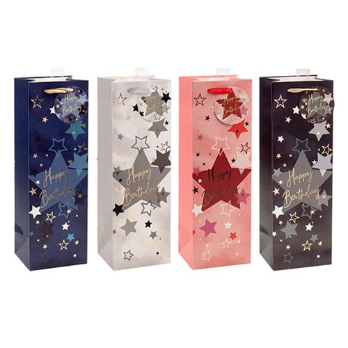Gift Bag 210gsm Happy Birthday w J Hook Bottle 120x360x100mm