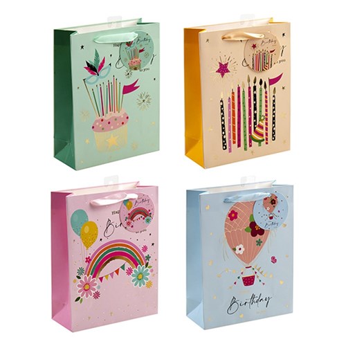 Gift Bag 210gsm Happy Birthday w J Hook M 180x240x80mm