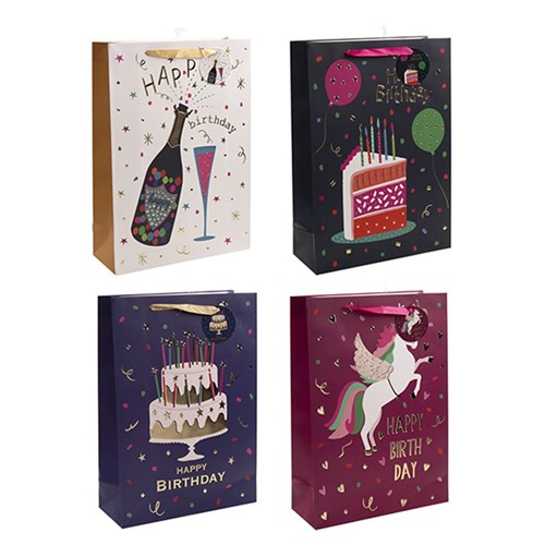 Gift Bag 210gsm Happy Birthday Embossed w J Hook XL