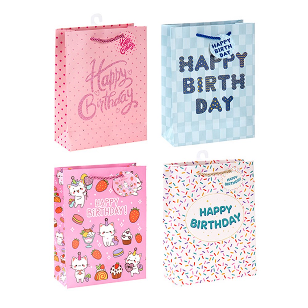 Gift Bag Happy Birthday Glitter S 210gsm 4 Asst