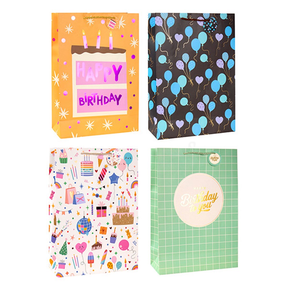 Gift Bag Happy Birthday Foil L 210gsm 4 Asst