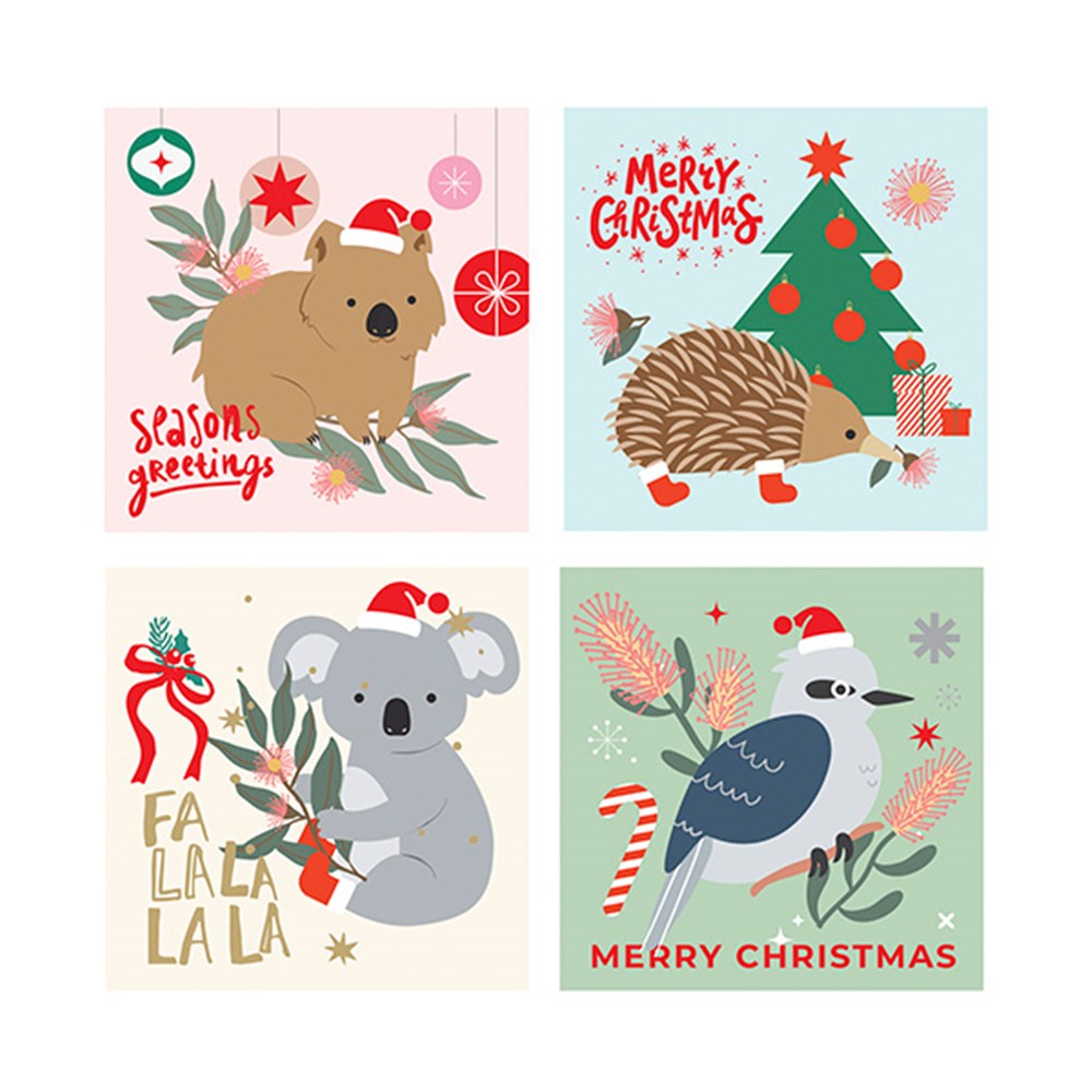 Cards Xmas Box 10 125x125mm Textured Foil Australian -