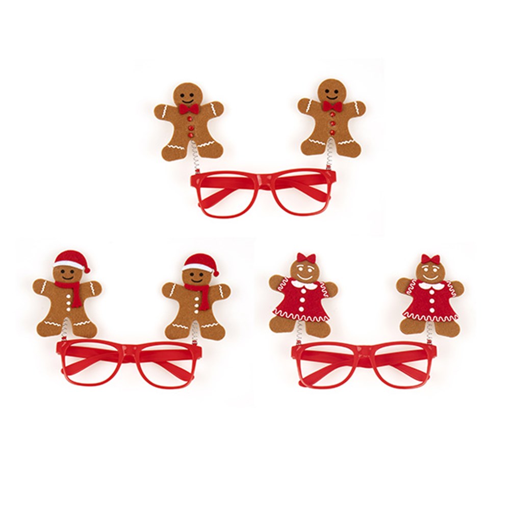 Glasses Glitter Novelty Xmas Gingerbread 3 Asst