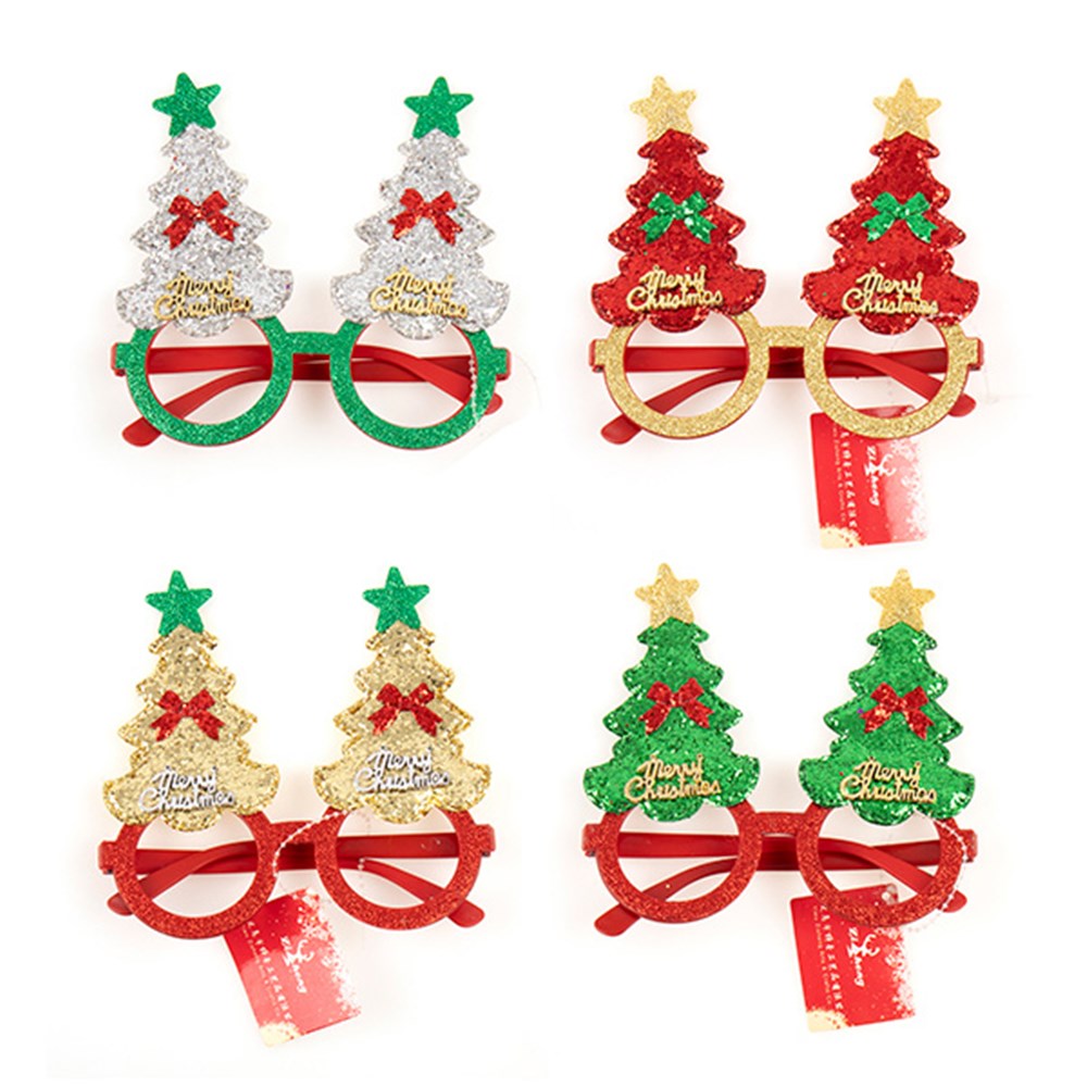 Glasses Novelty Xmas Tree w Glitter 4 Asst -