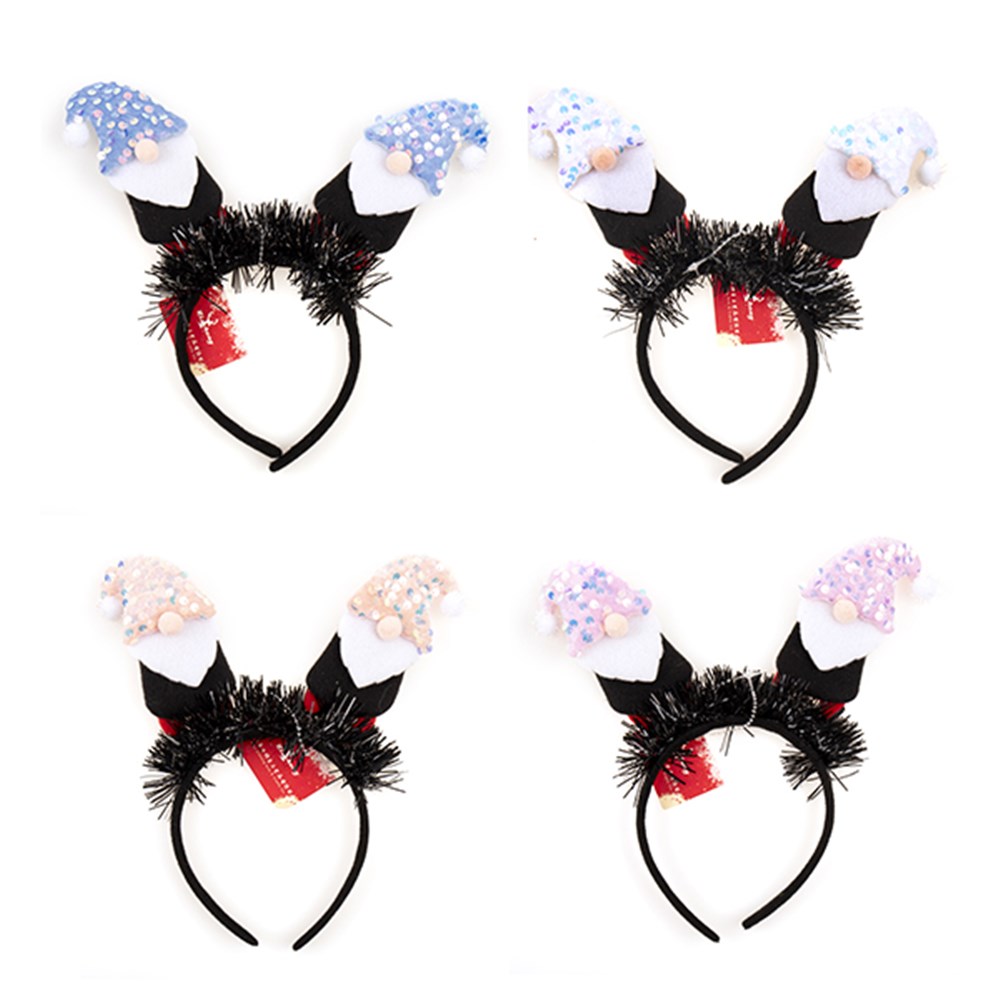 Headband Novelty Xmas Gnome Santa 4 Asst -