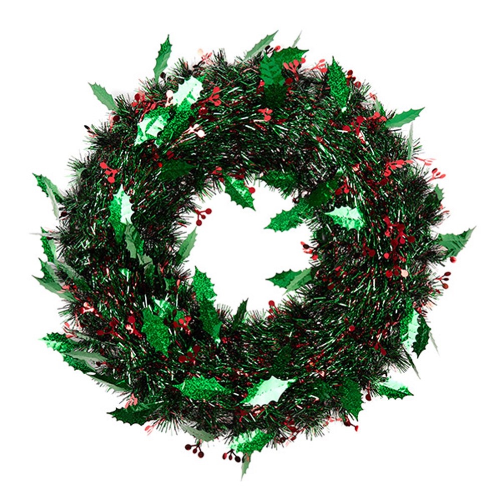 Wreath Xmas PET 44.5cm Green Holly Leaves w Red Berries