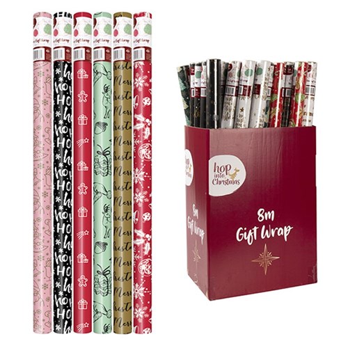 Wrap Paper Xmas 8Mx70cm 60gsm 38mm Core PDQ Asstd
