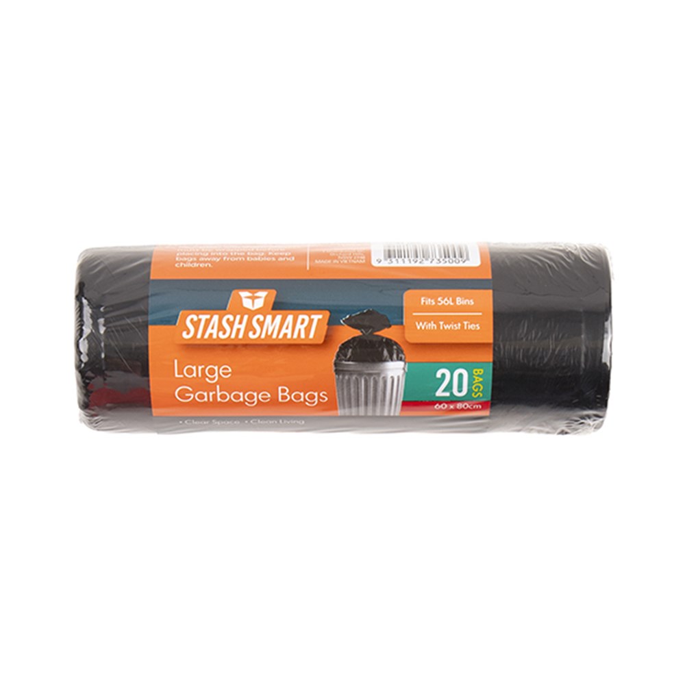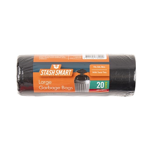 Garbage Bags Black HDPE 56L Pk20 60x80cm