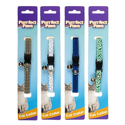 Collar Cat w Bell 30cm 4 Asstd Designs 1x30cm