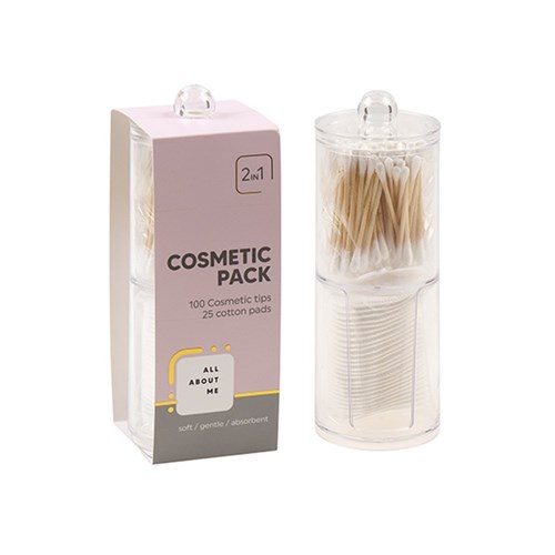 Cotton Set Pad/Tips w Container 100 Tips 25 Pads
