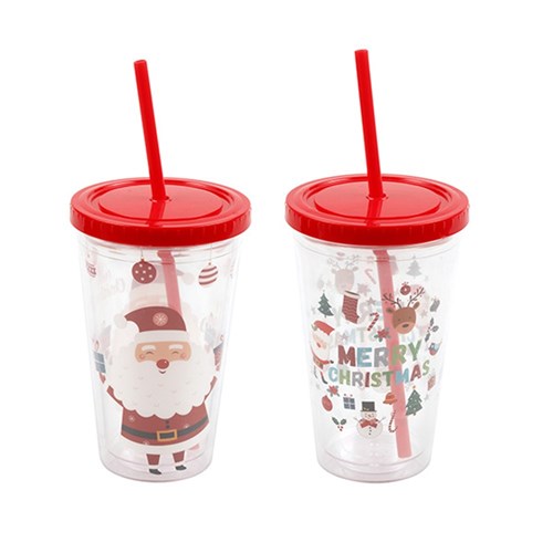 Cup Xmas w Straw & Lid 450mL 2 Asst Designs -