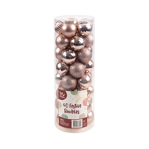 Decoration Xmas Bauble 40pk 6cm Rose Gold