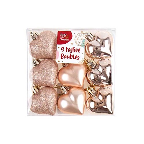 Decoration Xmas Bauble 9pk 4cm Heart Rose Gold