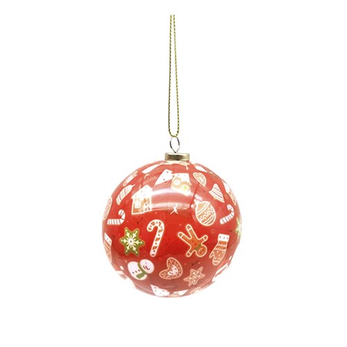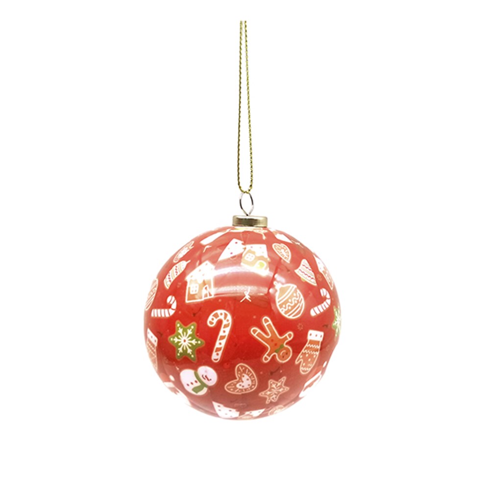 Decoration Xmas Bauble w Print 7.5cm PDQ -