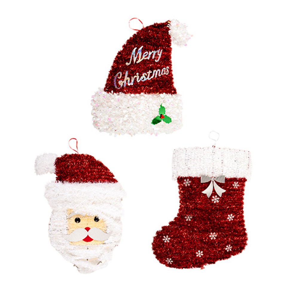 Decoration Xmas Hanging Sign Tinsel Jumbo 3 Asst