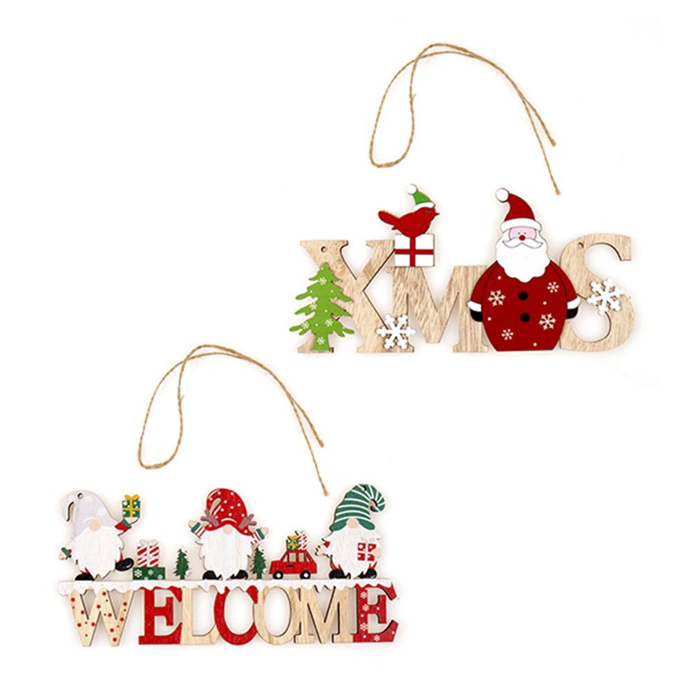 Decoration Xmas Hanging Sign Wooden 2 Asst