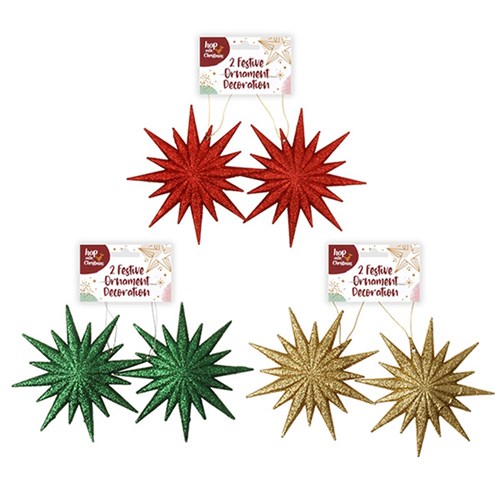Decoration Xmas Ornaments Star 16 Point 2pk 12x12x1cm