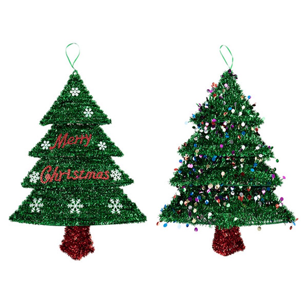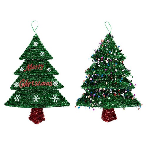 Decoration Xmas Hanging Sign Tinsel Jumbo Tree 2 Asst -