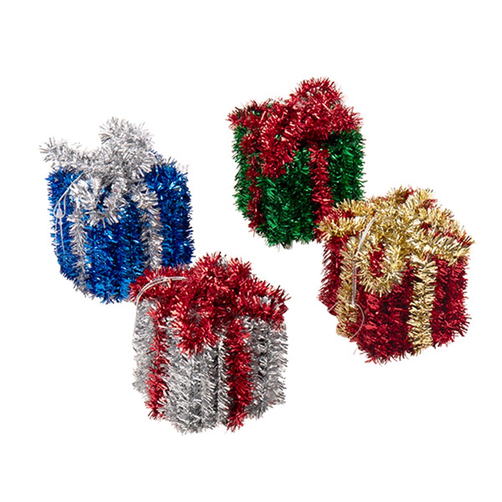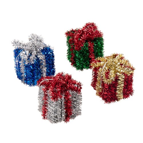 Decoration Xmas Table Tinsel 3D Gift Box 7.6x6cm 4 Asst -
