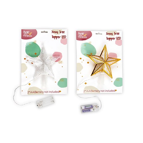 Decoration Xmas Tree Topper Star w BO Light Up 15x20cm
