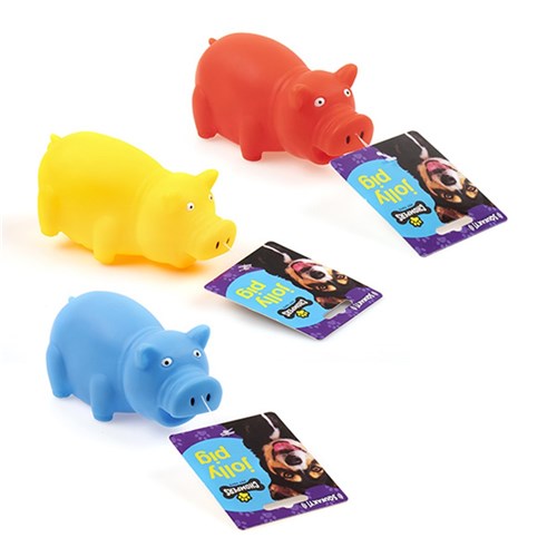 Dog Toy Pig 15cm Squeaky 3 Asstd Colours
