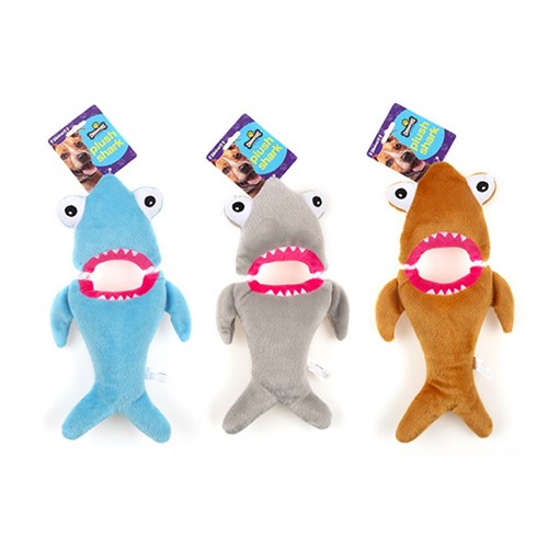 Dog Toy Plush Shark 33cm Squeaky 3 Asstd Colours