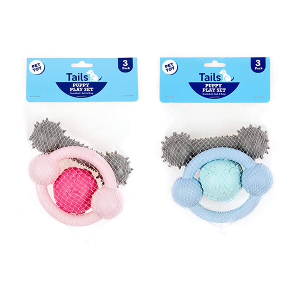Dog Toy Puppy Set 3pk Dumbbell Ball & Ring 2 Asstd