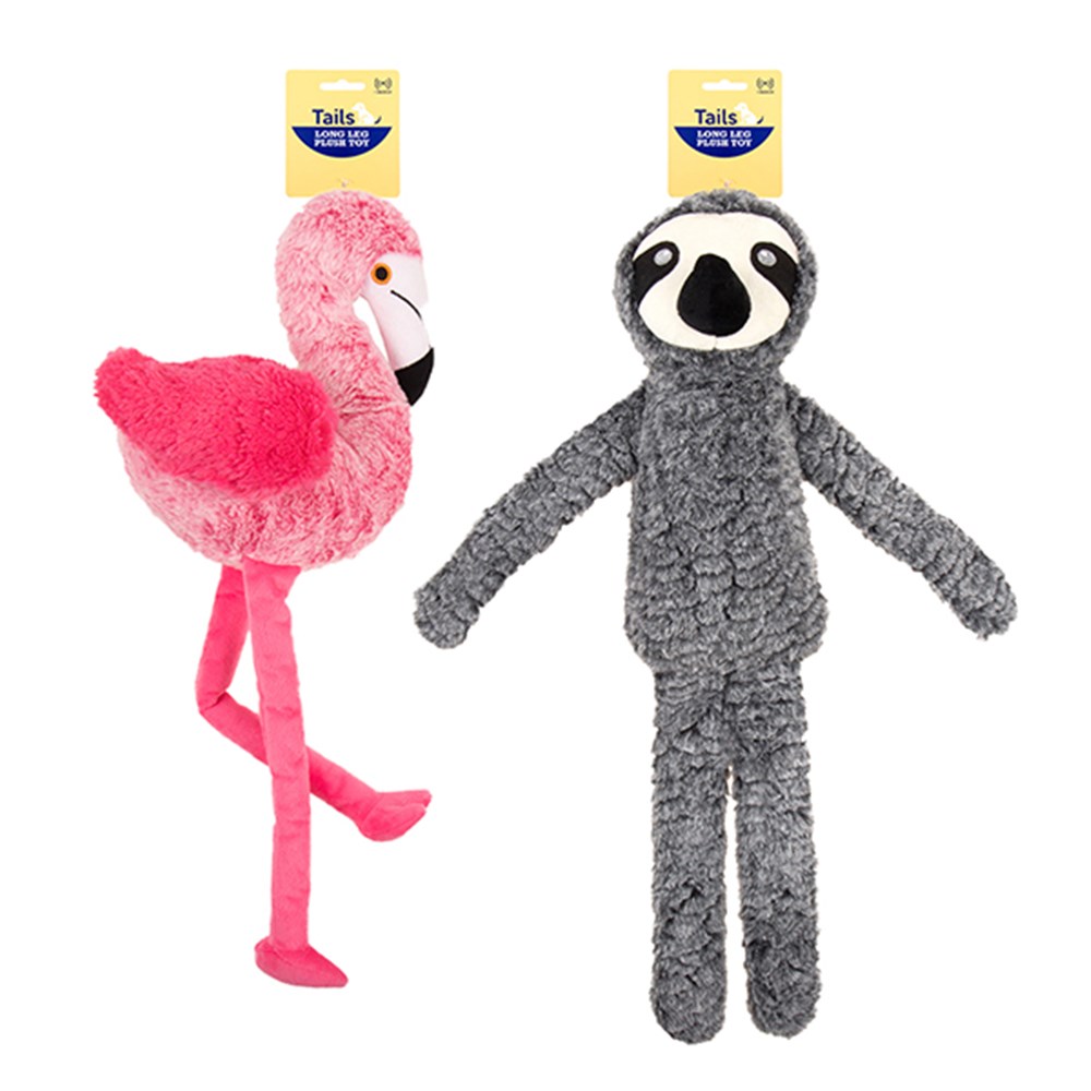 Dog Toy Tails Long Legged Plush Flamingo / Sloth 2 Asstd