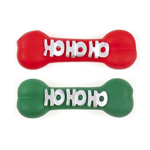 Dog Toy Xmas Bone Vinyl 22.5x8cm 2 Asst Cols