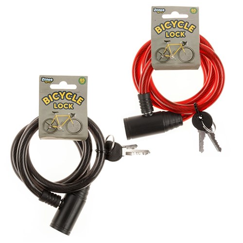 Bicycle Cable Lock 85cm 2 Asstd Col Black and Red