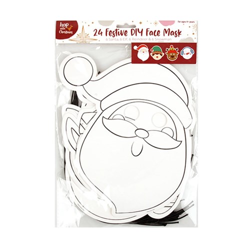 Face Mask Xmas DIY Colour 24pk 20cm Santa, Elf, Reindeer &