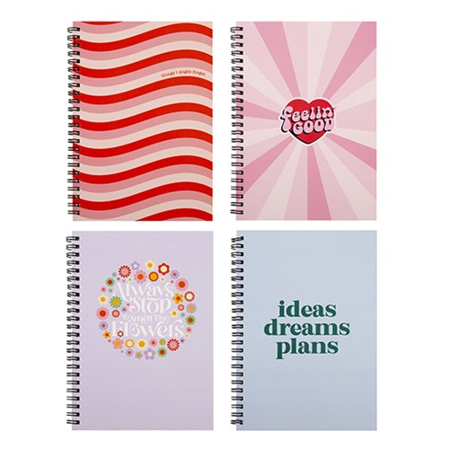 Notebook Card Cover Printed Spiral Quote 4Ast A5 120pg