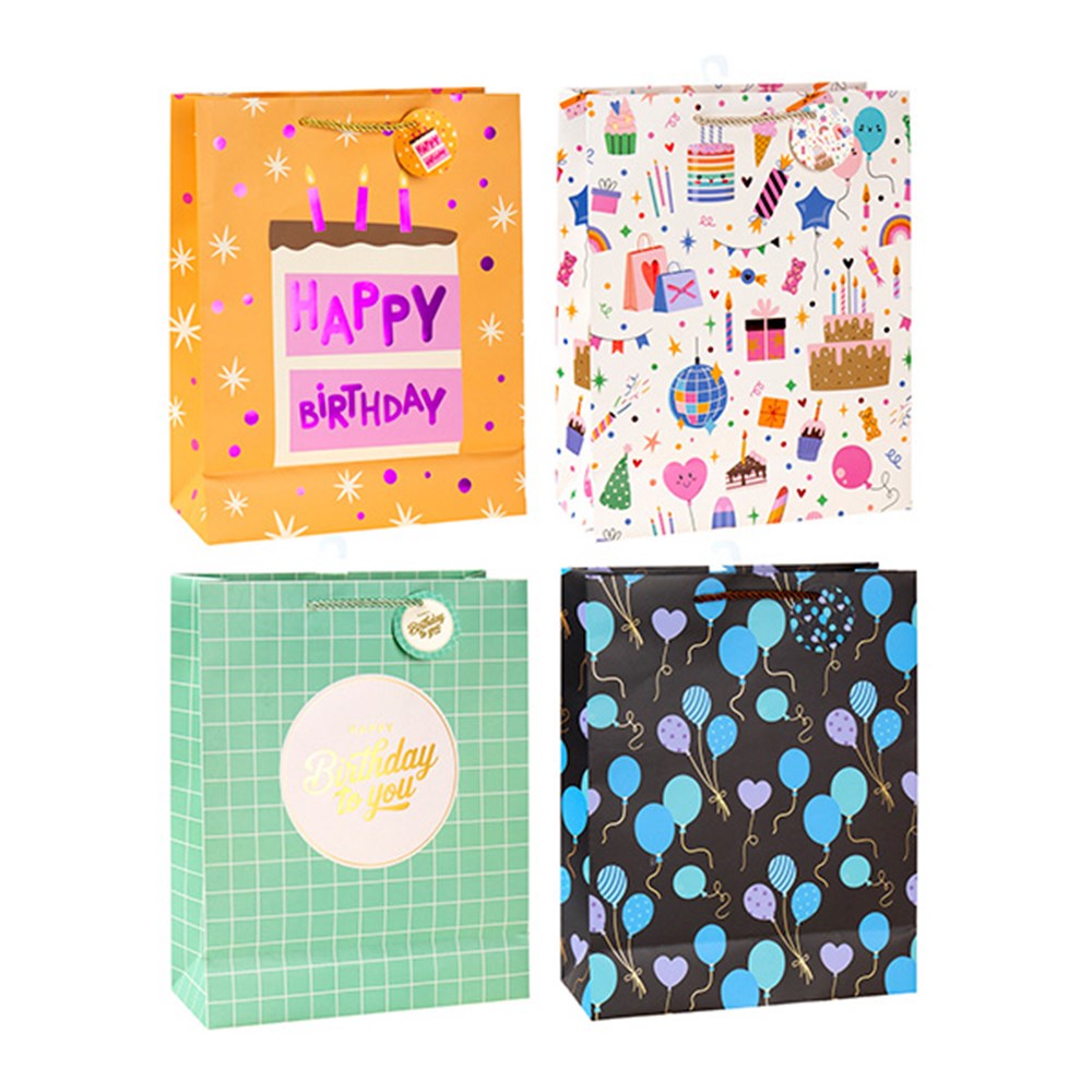 Gift Bag Happy Birthday Foil M 210gsm 4 Asst