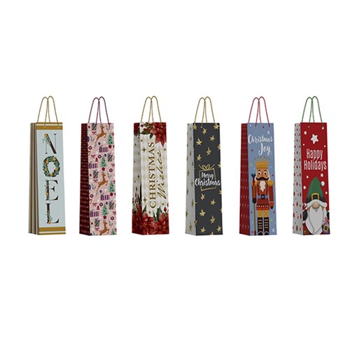 Gift Bag Xmas Bottle Basic 157gsm w JHook 6 Asst Designs