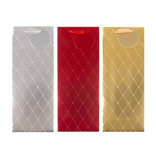 Gift Bag Xmas Embossed 210gsm Bottle w Geo Pattern 3 Asst