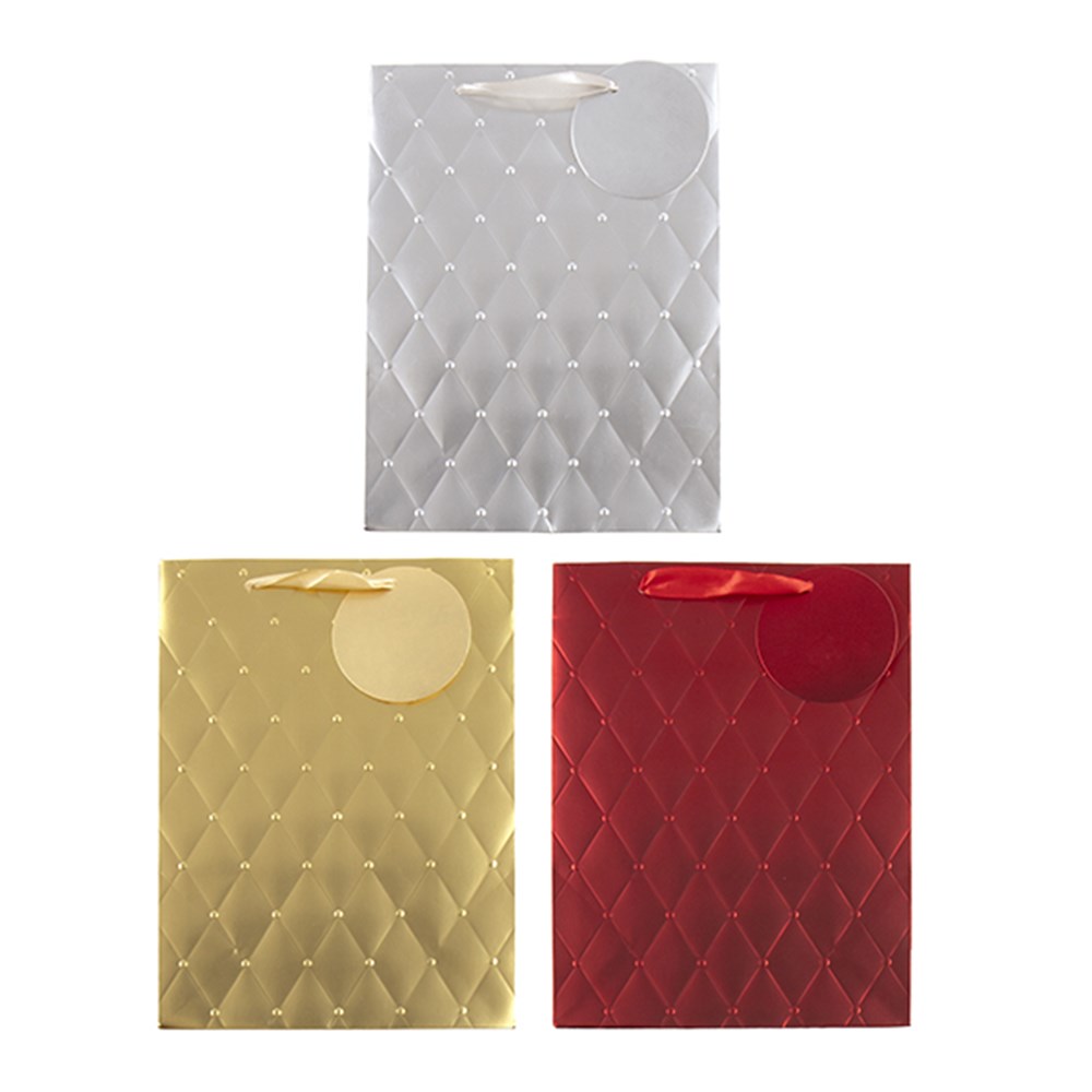 Gift Bag Xmas Embossed 210gsm M w JHook Geo Pattern 3 Asst