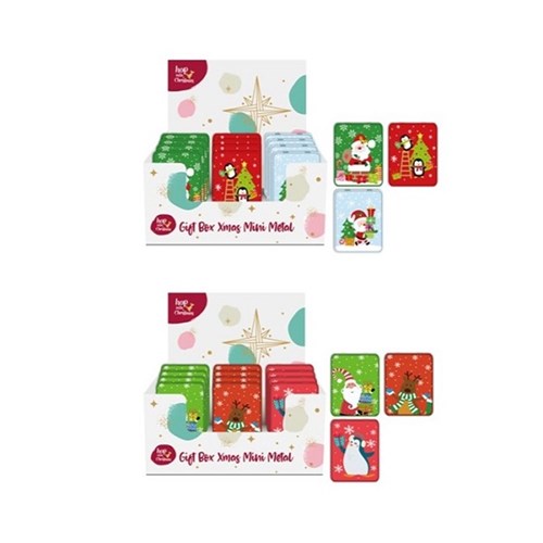Gift Box Xmas Mini Metal 11.6x9x1.5cm Asst Designs