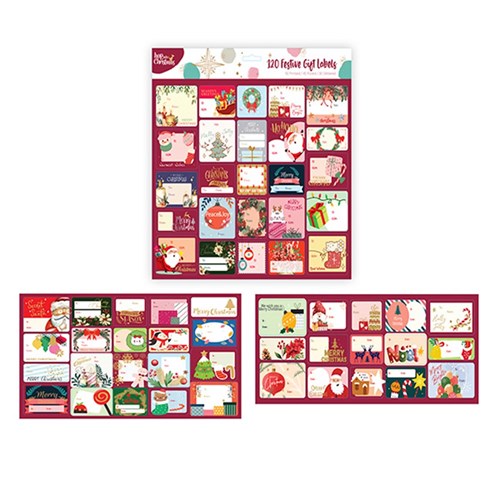 Gift Labels Xmas Self Ad w 4c Foil Glitter 120pk -
