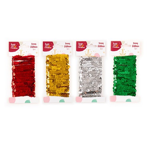 Gift Ribbon Xmas Glitter 5m 4 Asst